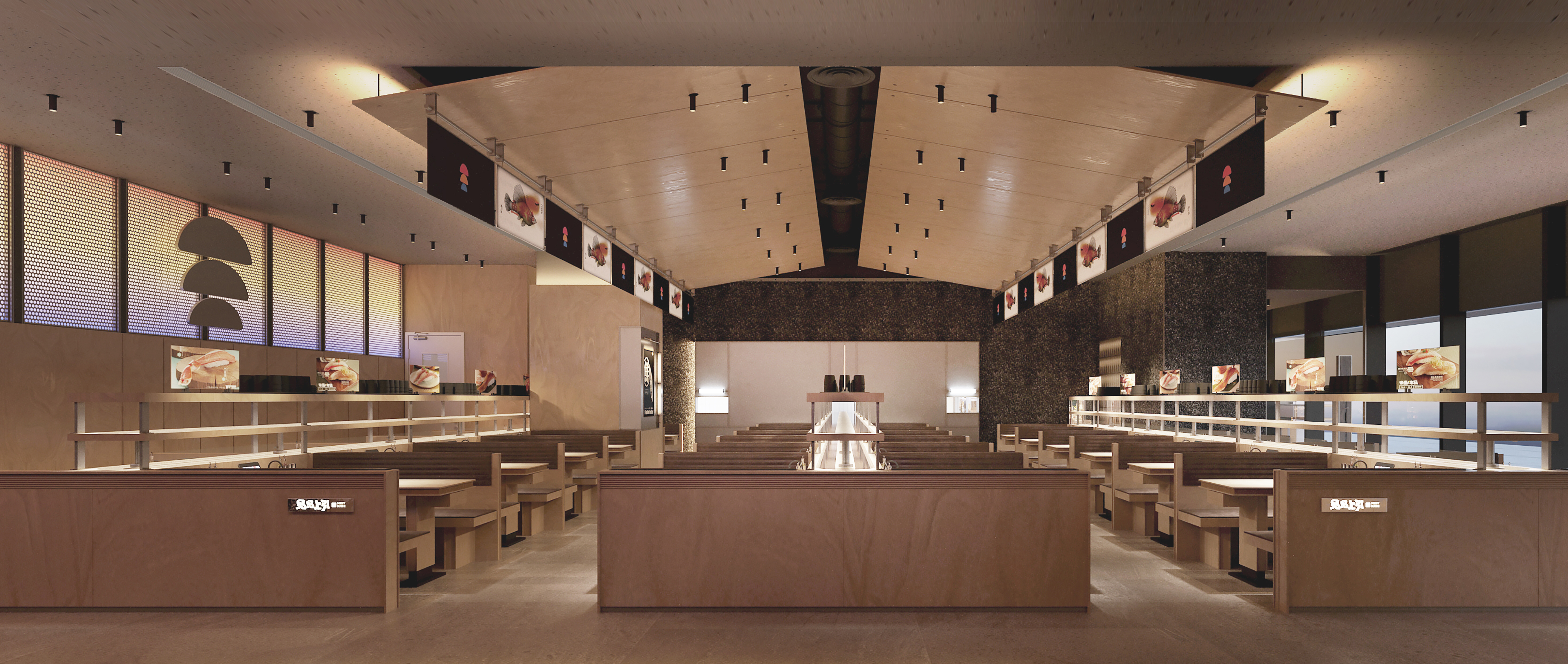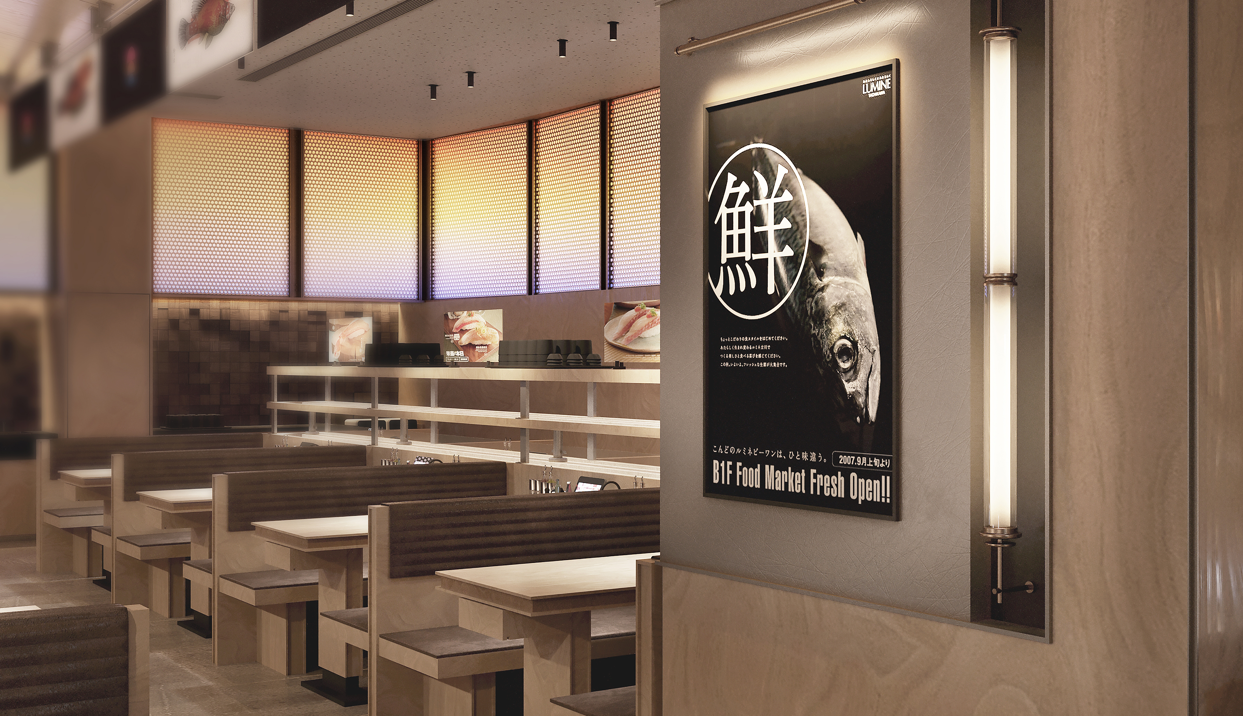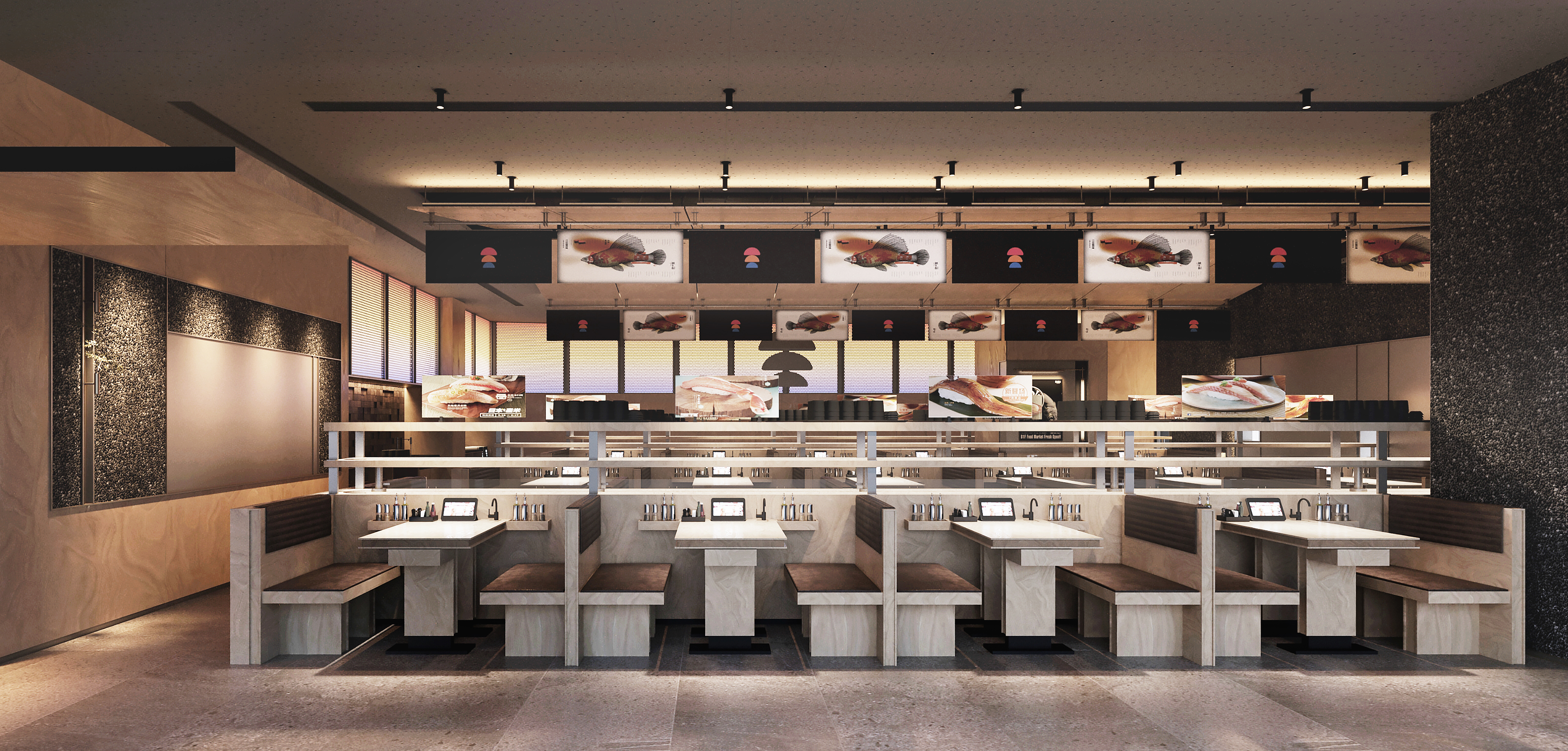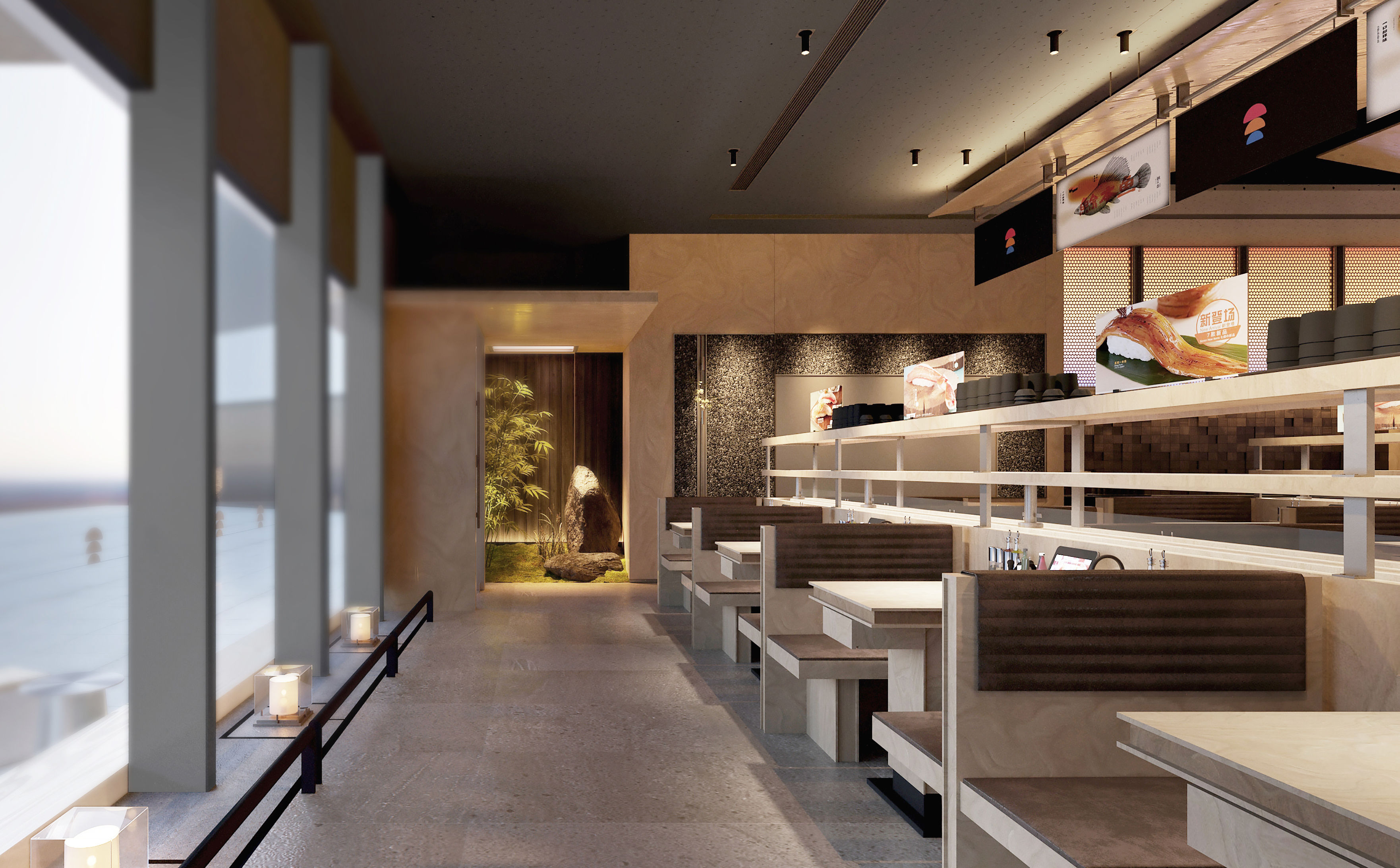 This project is designed with the concept of "Sea City", combining the traditional Japanese market's fireworks atmosphere with the modern feel of revolving sushi, creating an immersive Japanese food space that integrates food, experience, and interaction.
