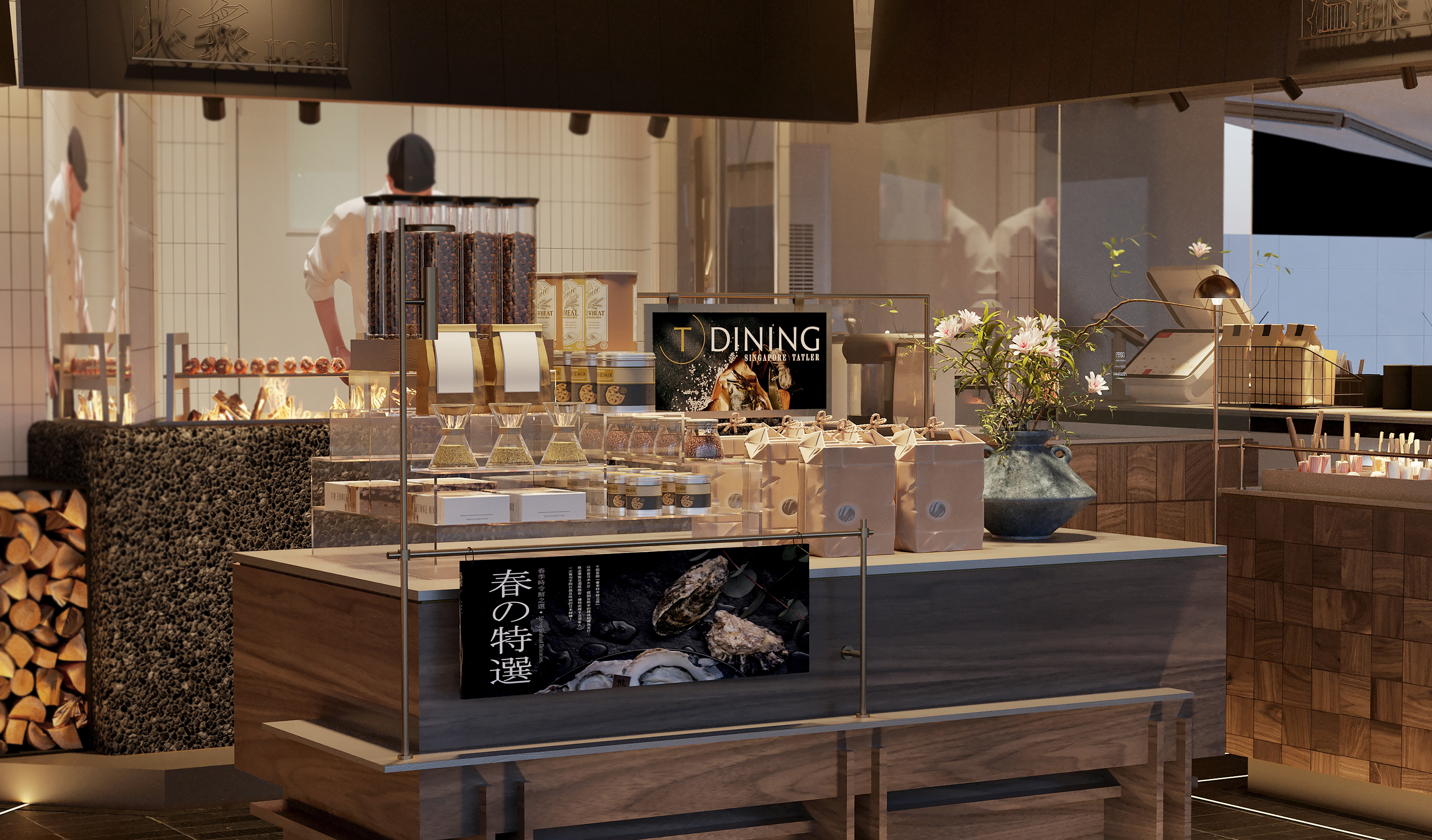 入口以传统日式市集为蓝本,打造充满烟火气的入口空间。暖黄灯光、手写菜单,营造亲切自然的氛围,吸引顾客驻足。