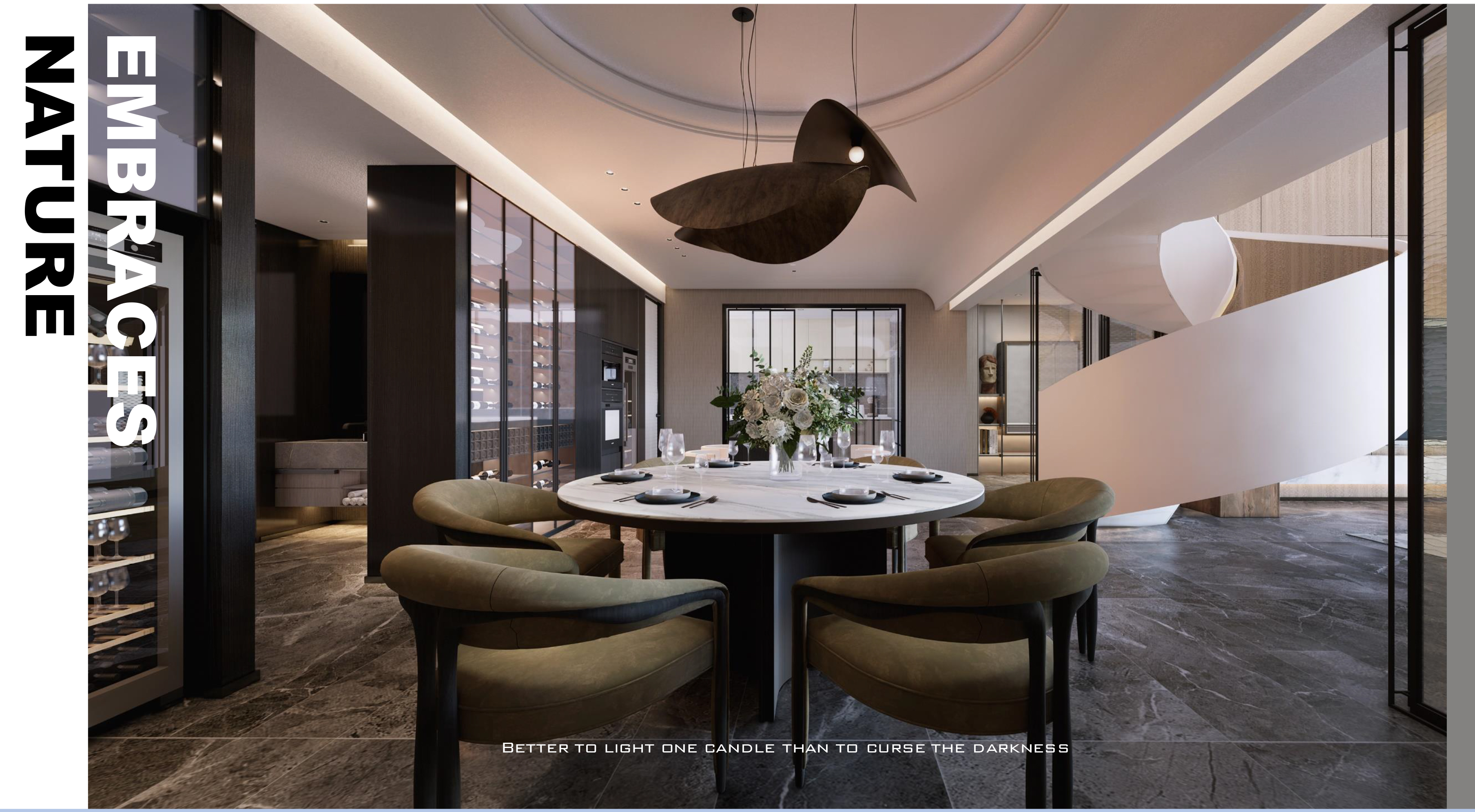 本案设计以“结构主义”为灵感,通过挑空客厅、旋转楼梯等元素,构建空间的层次感与韵律感。