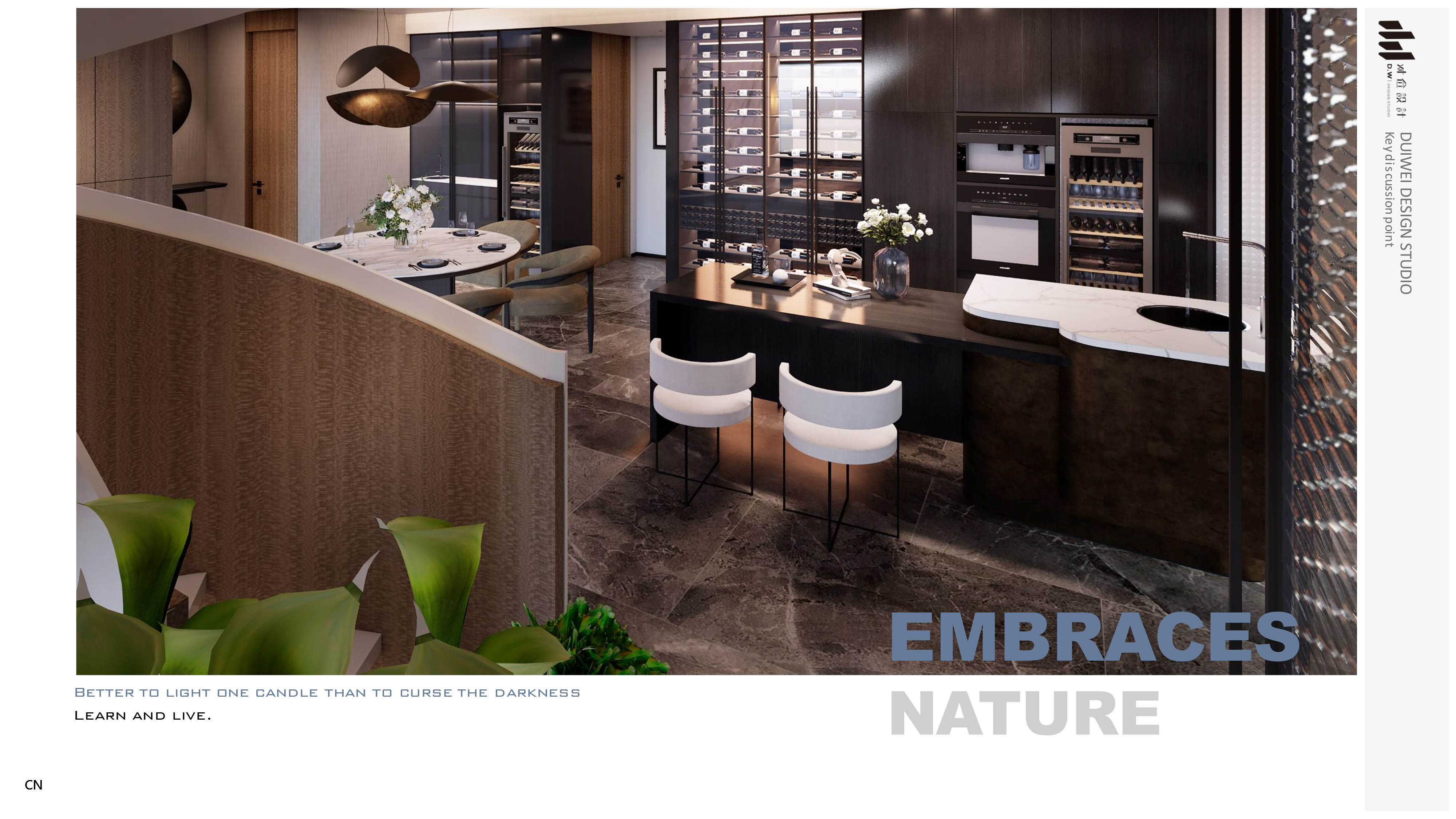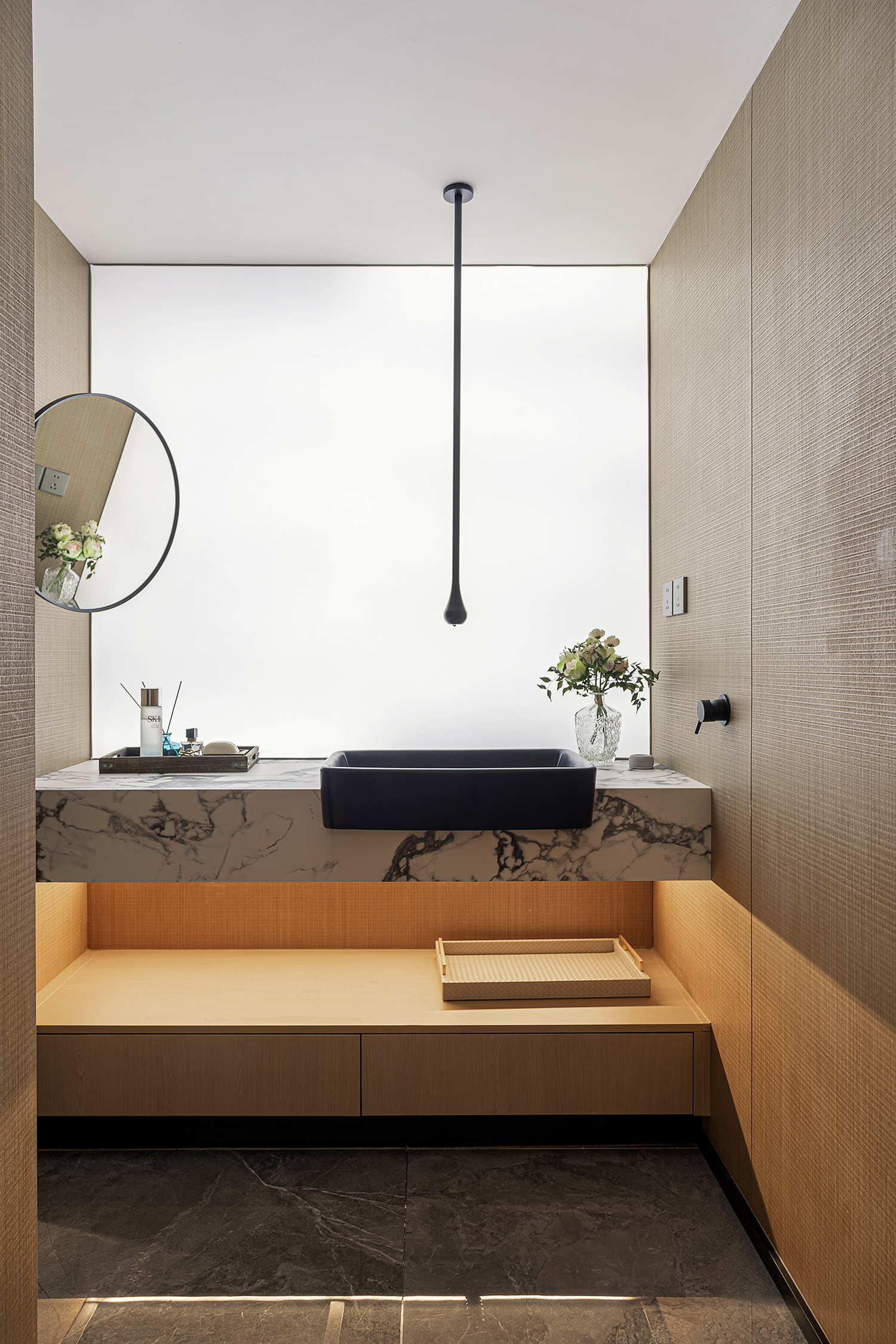 The void design maximizes the introduction of natural light and creates a spacious and bright atmosphere. Paired with simple and neat furniture and artistic decorations, the walls of the public area are made of serrated wooden wall panels. Their unique shape and texture add a natural and rustic atmosphere to the space, while contrasting with the overall simple and modern style, highlighting humanistic feelings.