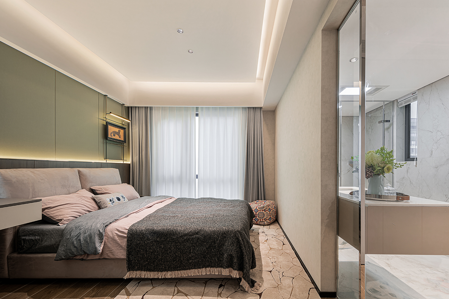 The second floor is planned as a private rest area, including functional spaces such as the master bedroom, second bedroom, and study. The master bedroom is equipped with a separate dressing room and bathroom to enhance living comfort.