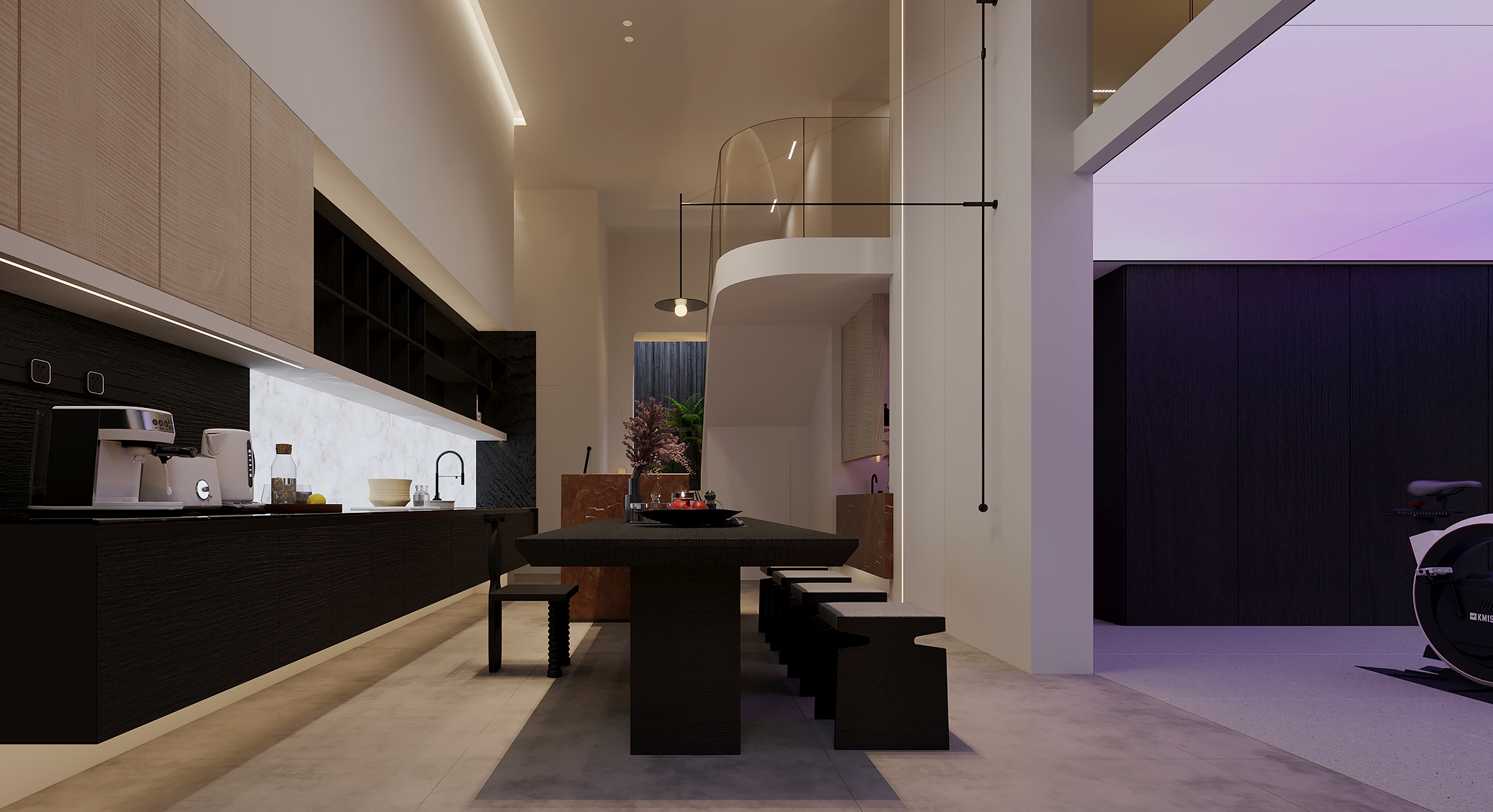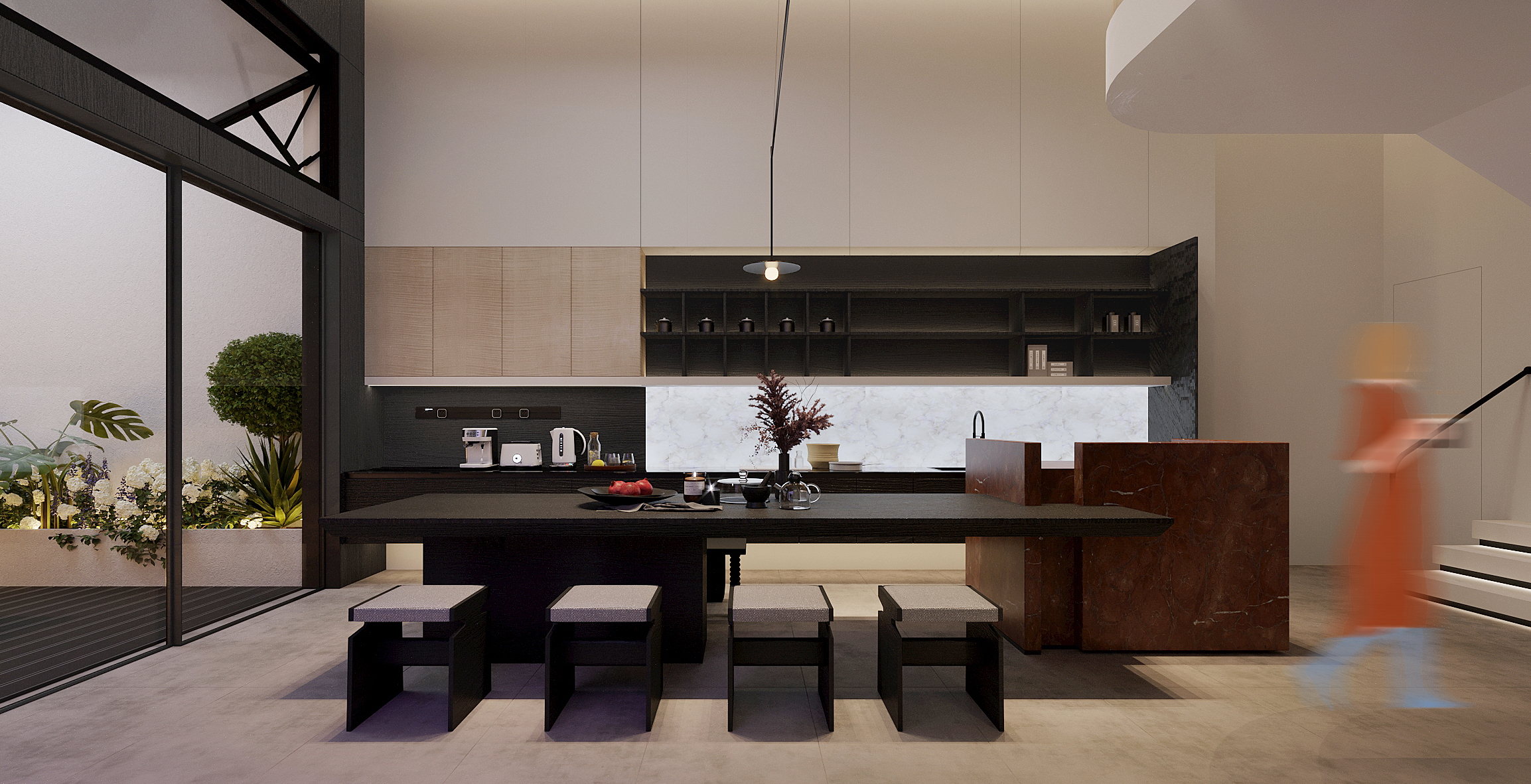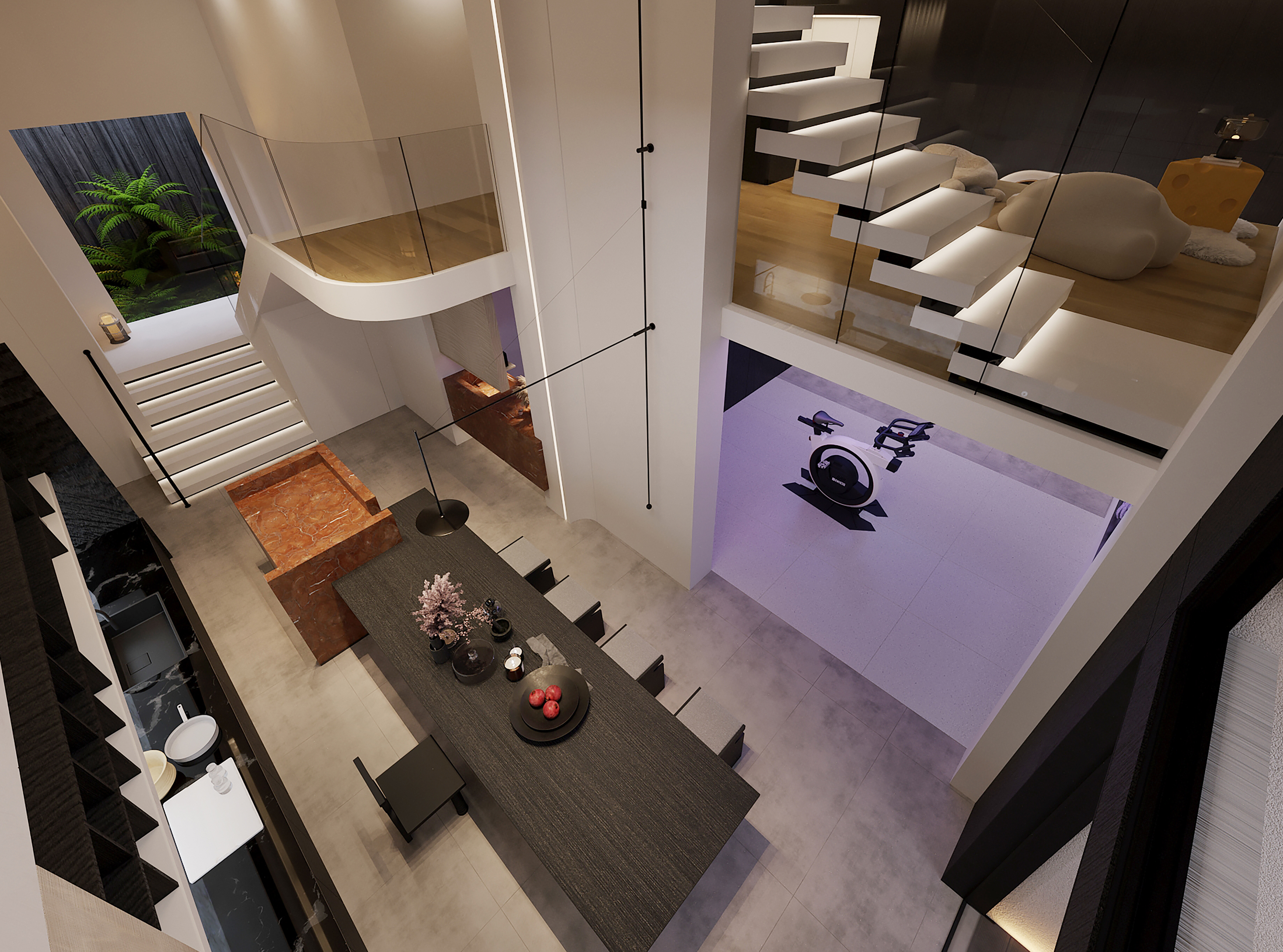 这座洋房私宅,我们打破传统纵向空间的疏离感,通过巧妙的破拆与重组,将阳光引入室内深处,打造一个充满生活气息,又兼具艺术氛围的亲子社交空间。