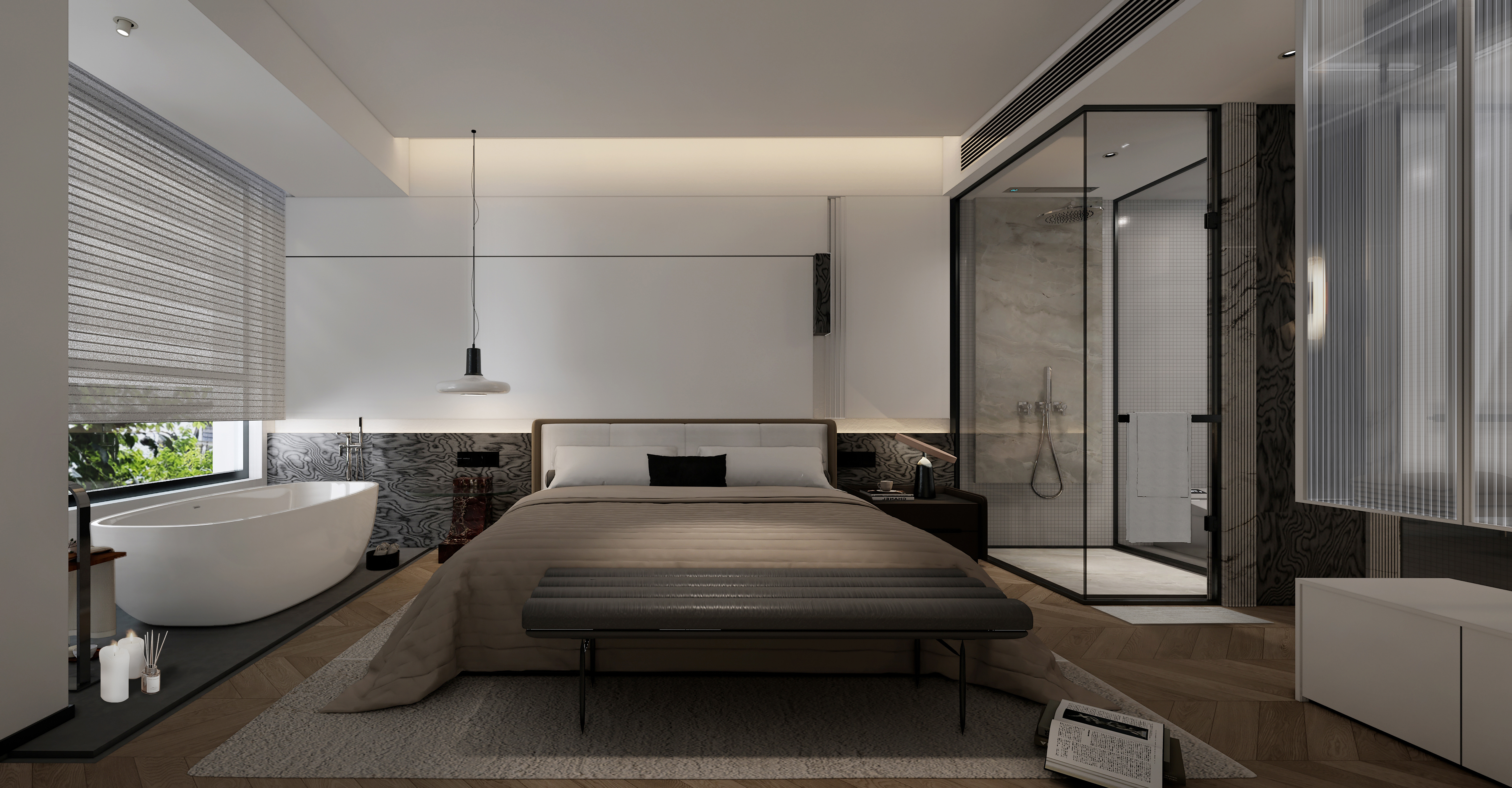 通体白色为基调,搭配原木色地板,营造简约舒适的居家氛围。融入莫奈画作中柔和的色彩与笔触,以及卧室的藕粉色床品,为空间注入艺术气息,仿佛置身于莫奈的花园。
