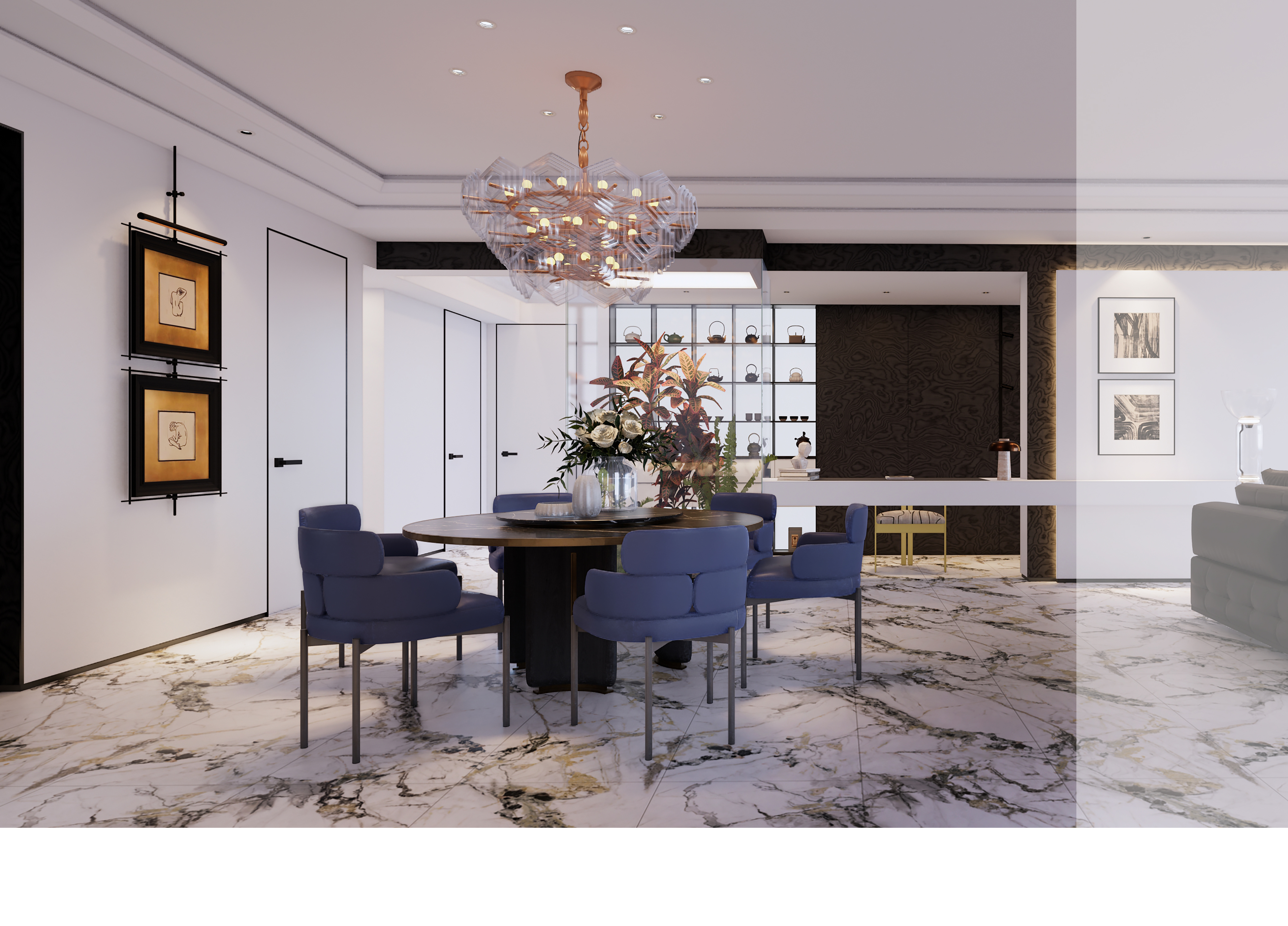 The dining room and tranquil study cleverly form a circular flow, which not only maximizes space utilization but also endows the living room with versatile functions - whether it's family gatherings, quiet reading, or casual work, all can be handled with ease. Every detail tells the story of the encounter between time and creativity, making people feel like they are in an artistic feast about a better life.